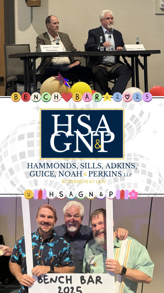 This year’s Baton Rouge Bar Association’s Bench Bar Conference took place in Gulf Shores, Alabama and hosted at The Lodge. HSAGN&P was a proud sponsor at this year’s event and multiple team members attended. Hal Adkins presented on the topic “Out of the Woods (and Court)” along with fellow mediator, Jack Roethele. Pictured below from the event are HSAGN&P team members, Hal Adkins, Kyle Celestin, and Scott Thomas, along with Jack Roethele.